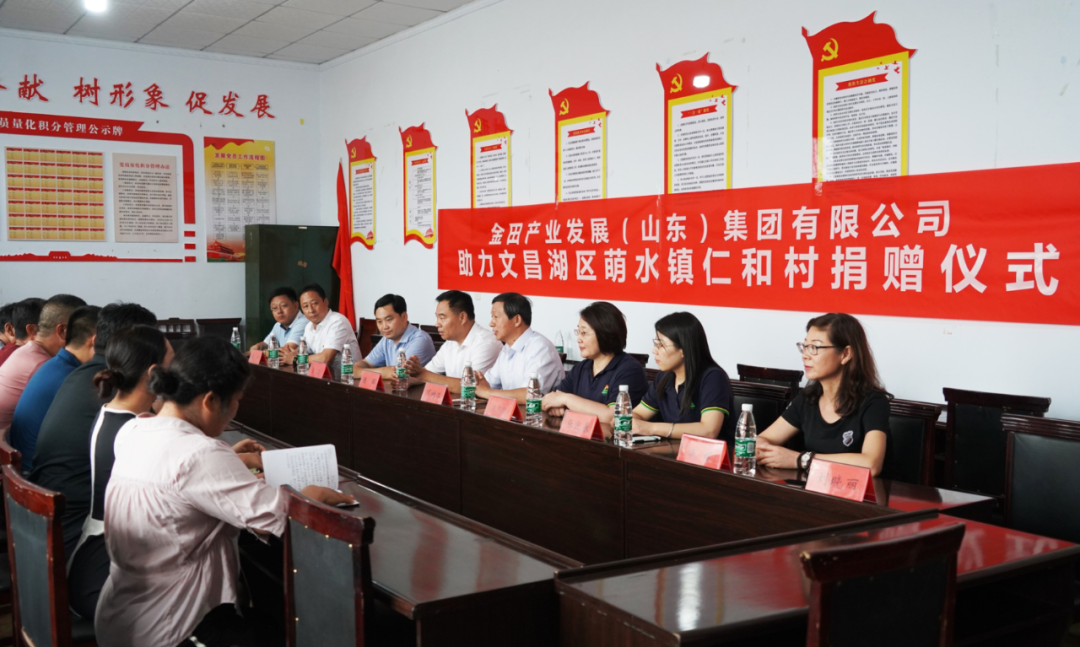 為繼續(xù)助力精準(zhǔn)扶貧脫貧,推動美麗鄉(xiāng)村建設(shè),金田集團于7月23日組織公司一行5人到文昌湖區(qū)萌水鎮(zhèn)仁和村村委會進行了捐贈活動。文昌湖區(qū)工委委員陳輝、萌水鎮(zhèn)黨委副書記鎮(zhèn)長王衛(wèi)、文昌湖區(qū)農(nóng)林局副局長周廣、文昌湖土地發(fā)展有限公司總經(jīng)理李暉以及仁和村兩委成員出席了此次活動。