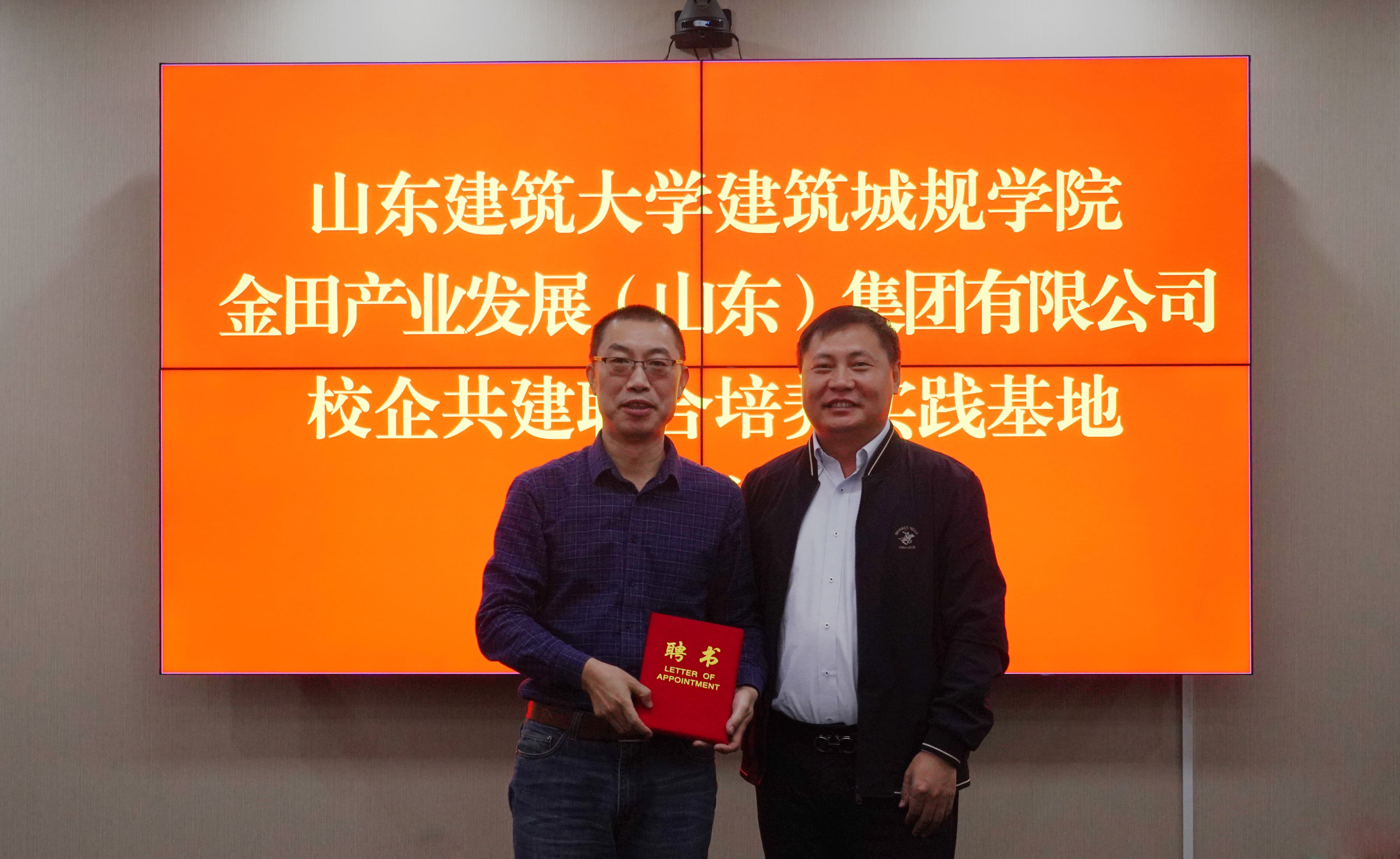 山東建筑大學(xué)建筑城規(guī)學(xué)院 金田產(chǎn)業(yè)發(fā)展集團(tuán) 校企共建聯(lián)合培養(yǎng)實踐基地簽約儀式順利完成