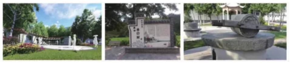 對(duì)鄉(xiāng)村公共空間,可通過(guò)設(shè)置健身娛樂(lè)設(shè)施、種植各類鄉(xiāng)土植物(以小喬木圍合公共空間,輔以色葉樹(shù)種以及觀賞性花卉),營(yíng)造出開(kāi)敞、半開(kāi)敞以及私密空間,滿足不同年齡階段村民的需求; 在開(kāi)敞空間增設(shè)各類具有鄉(xiāng)土文化特色的景觀小品、文化小品,充分展示鄉(xiāng)村文化特色 。