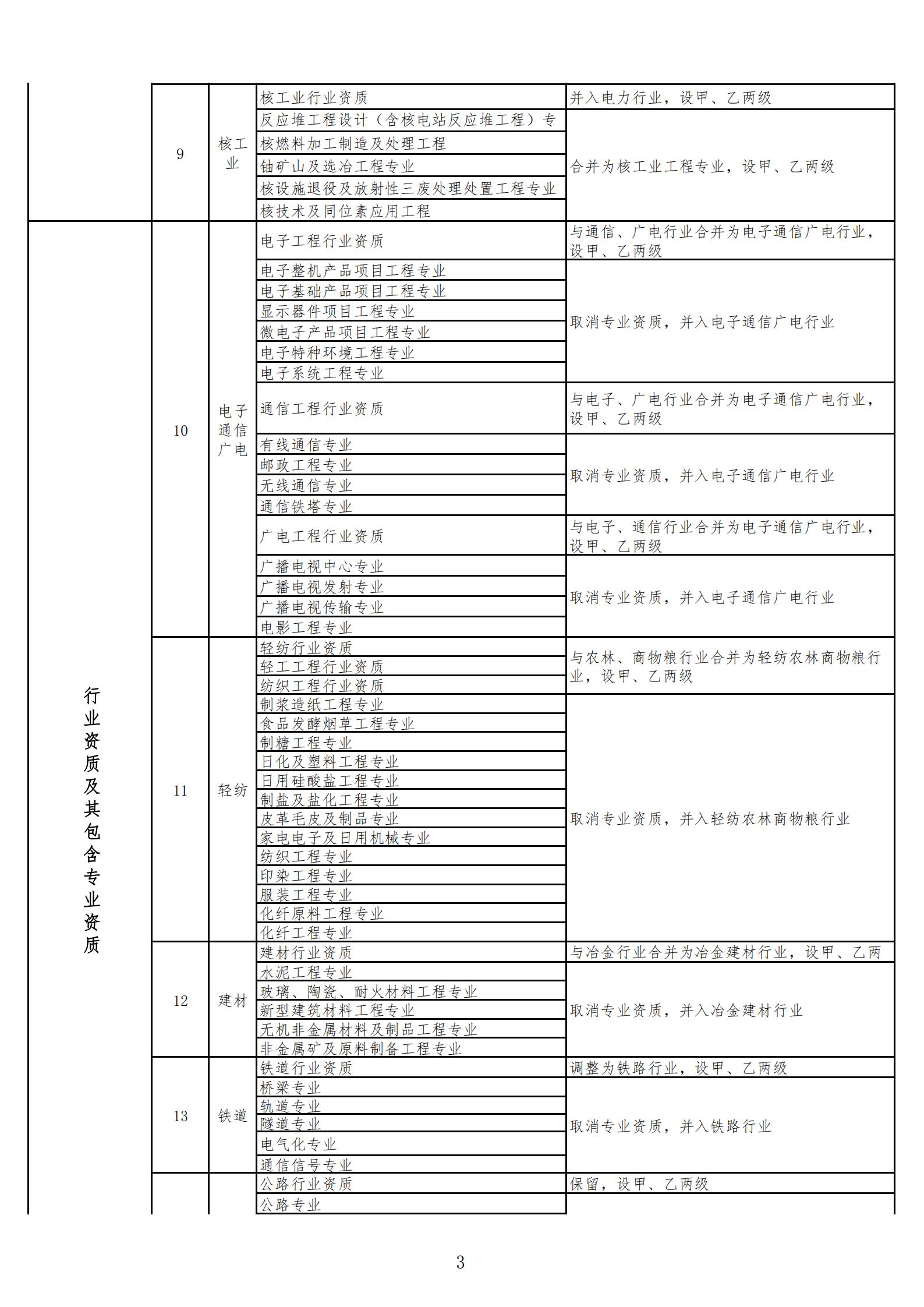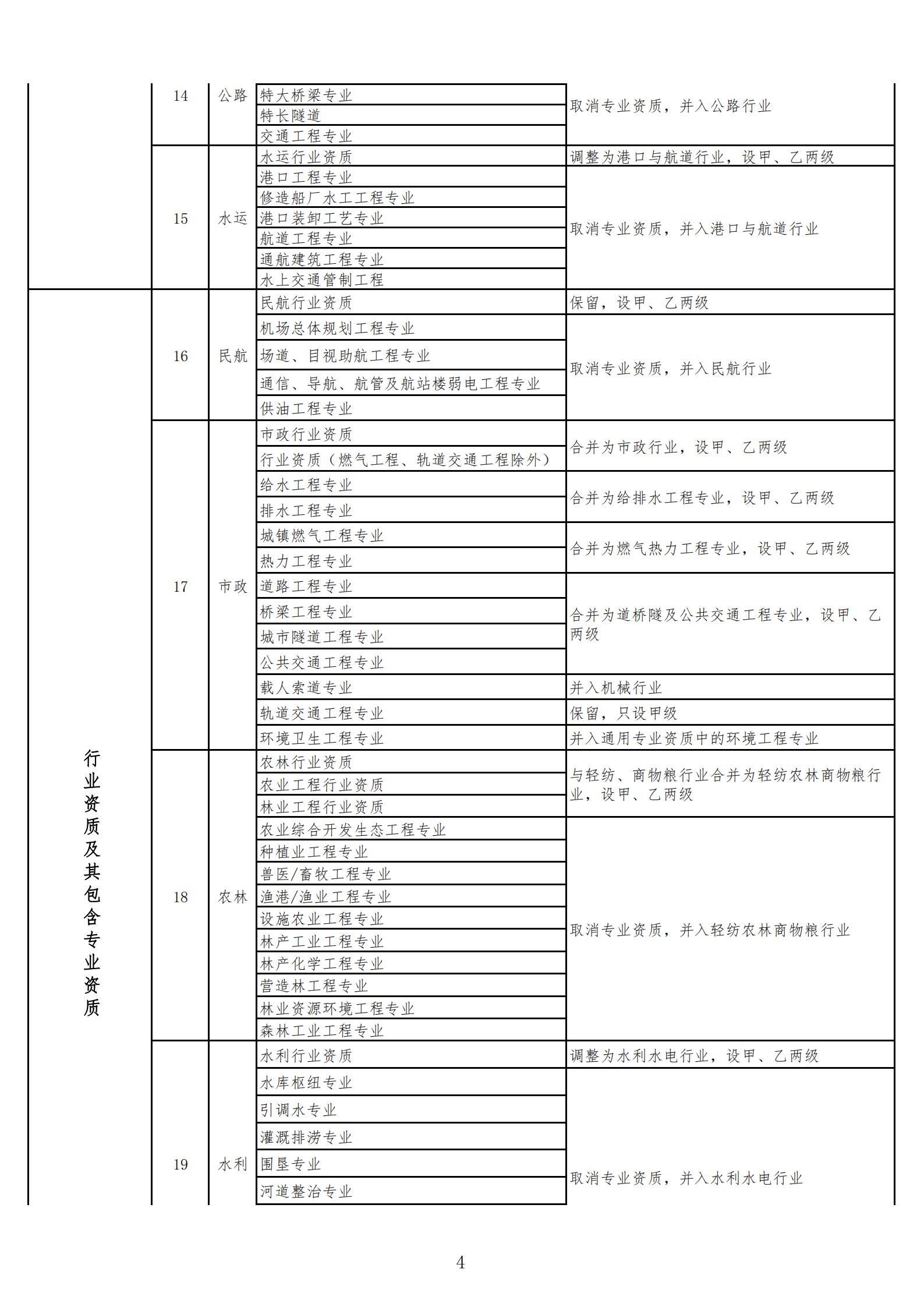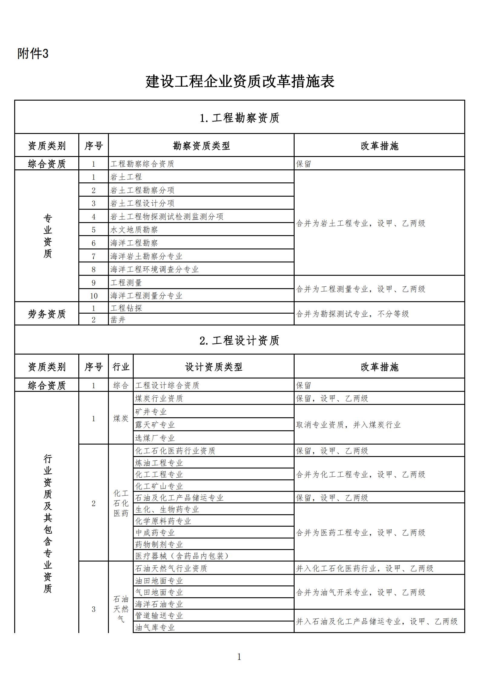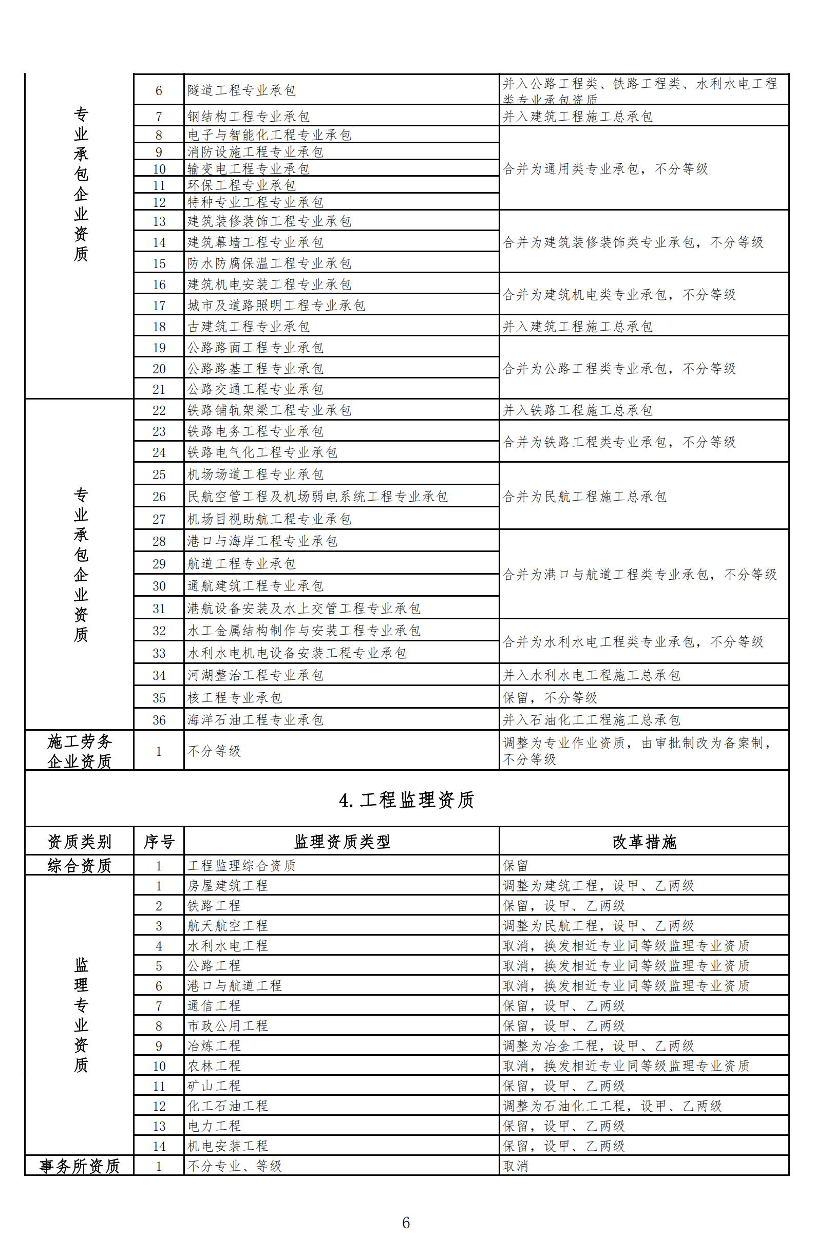 一是精簡資質類別。將所有的資質等級原則上都壓減為甲乙兩級,有的資質只設了一個等級。