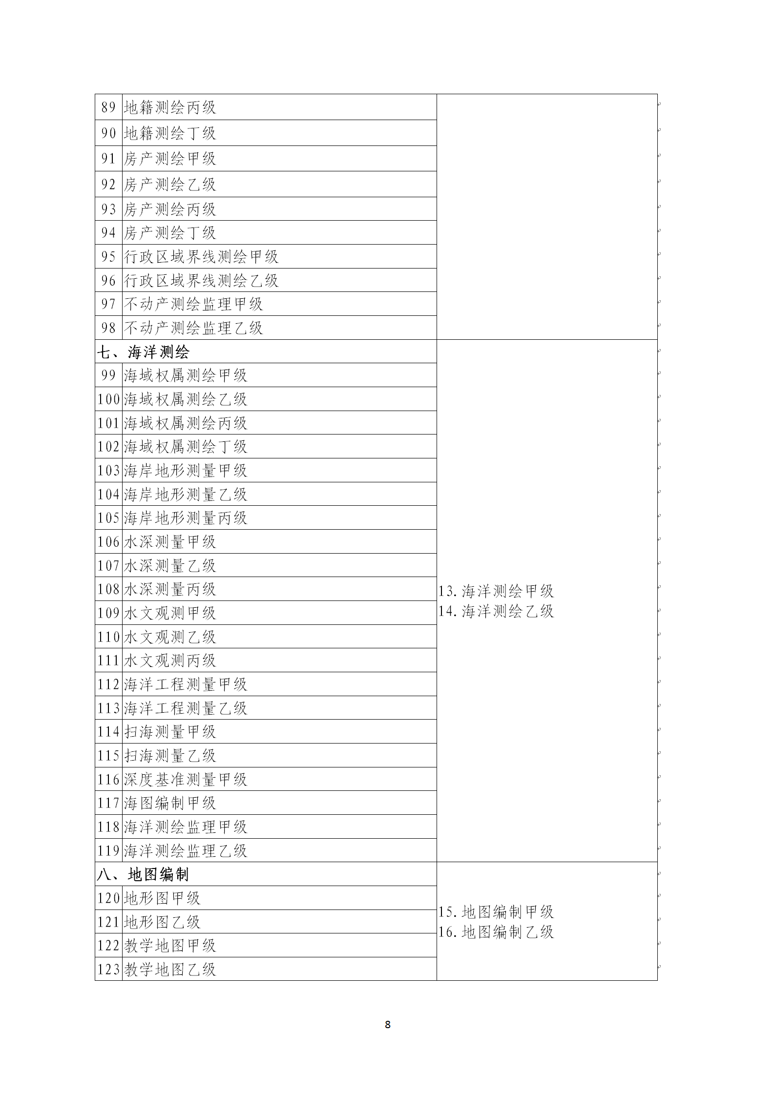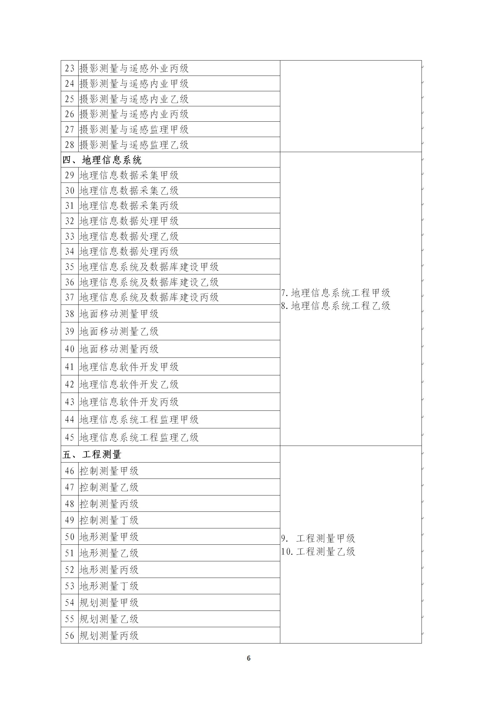 三是合理降低準入門檻。突出測繪資質的專業(yè)屬性,取消沒有法定依據(jù)的前置考核條件,降低非測繪專業(yè)技術人員和非常用貴重裝備的考核要求。