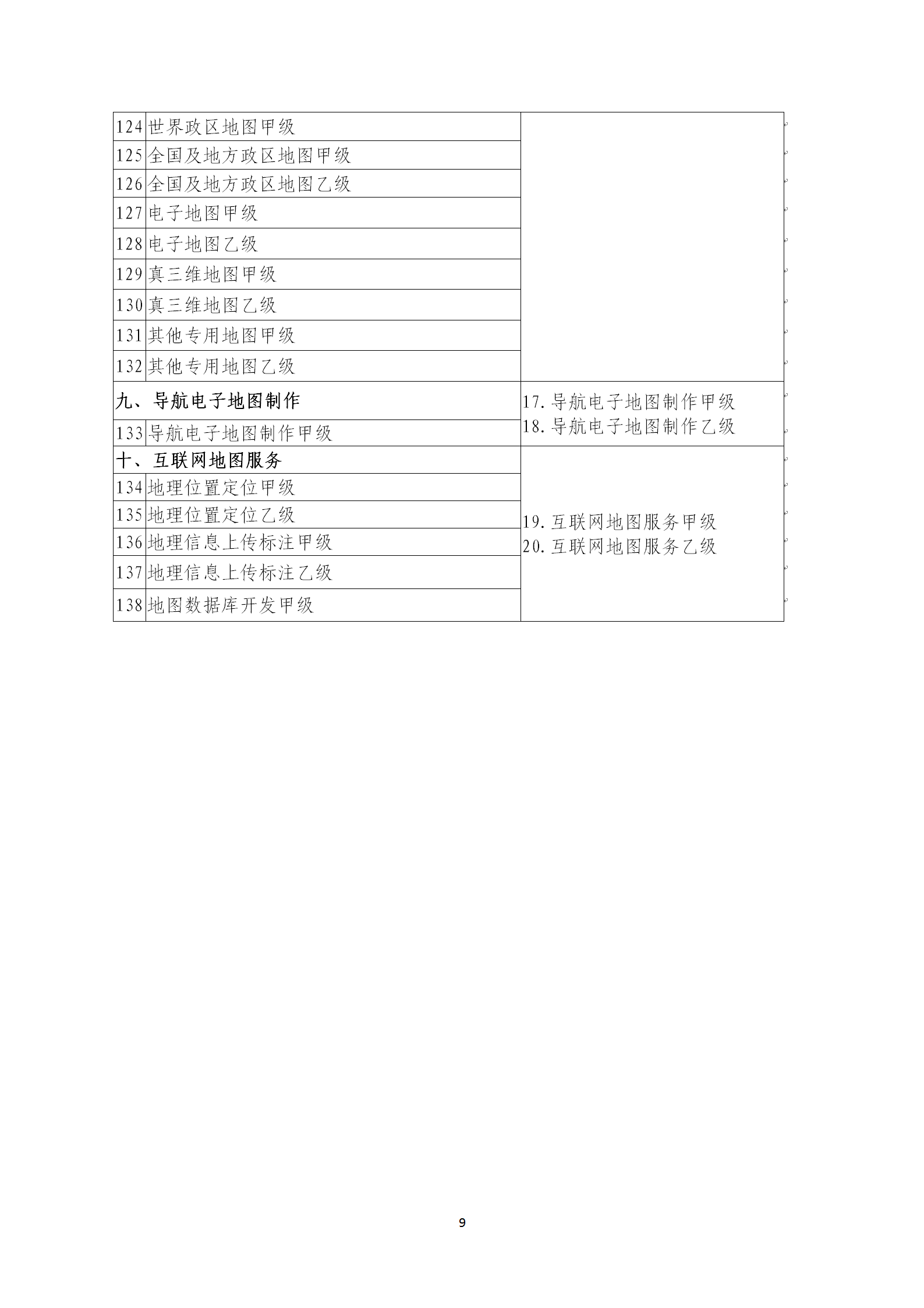 二是下放甲級資質審批權限。除導航電子地圖制作甲級資質保留在自然資源部審批外,其余的9項甲級資質審批權限由自然資源部下放到省級自然資源部門。