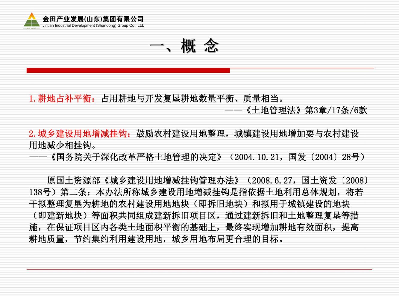 為了幫助大家理清土地兩項(xiàng)指標(biāo)的概念、來龍去脈(政策演變)、需把握的要點(diǎn)(注意的問題)、操作流程等問題,金田產(chǎn)業(yè)發(fā)展集團(tuán)公司特推出“土地兩項(xiàng)指標(biāo)問題解析”提綱,供大家學(xué)習(xí)交流,不當(dāng)之處,敬請(qǐng)批評(píng)指正。